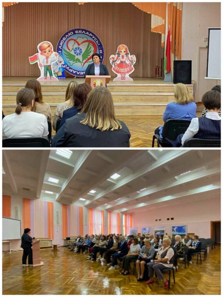 В рамках проведения единого дня информирования состоялась встреча коллектива ГУО «Средняя школа № 15 г. Гомеля» и депутата городского совета депутатов 19 созыва Лазаретовой Тамарой Николаевной. В ходе встречи были обсуждены возникновения Дня единства, значение мира и согласия для белорусского народа, история страны как важный фактор формирования личности.