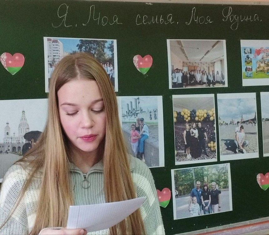 У учащихся 10 «А» класса ГУО «Средняя школа № 15 г. Гомеля» прошёл классный час на тему «Я. Моя семья. Моя Родина». Ребята подготовили эссе на заданную тему, в которых отразили свое отношение к семейным ценностям, уважение к традициям и истории своей страны, а также порассуждали на тему взаимосвязи всех этих понятий.
