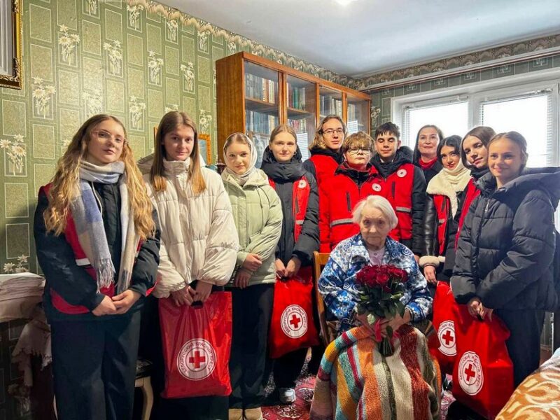 В преддверии Дня освобождения Гомеля волонтёры школы совместно с Красным Крестом поздравили участницу Великой Отечественной войны