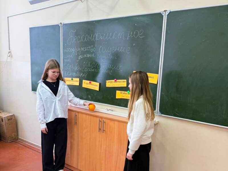 Педагоги-психологи и педагог-социальный совместно с классными руководителями рассказали детям о способах предупреждения конфликтов в классе, напомнили о уважительном отношении друг к другу. Целью занятия является повышение толерантности и профилактики конфликтов в межличностных отношениях учащихся (в рамках профилактики суицидоопасного поведения и работы по сплочению детского коллектива).