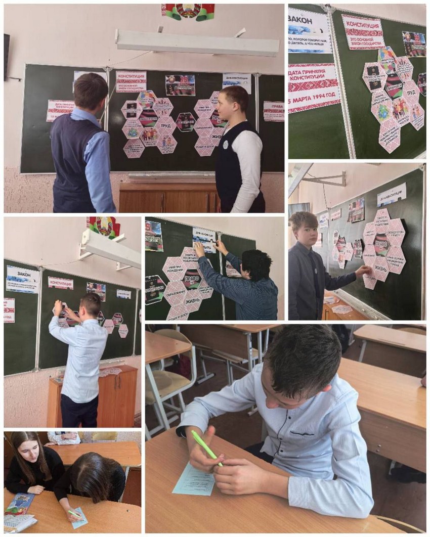 В преддверии Дня Конституции Республики Беларусь в 8 «Г» классе прошло занятие-диалог «День Конституции Республики Беларусь». Учащиеся ГУО «Средняя школа №15 г.Гомеля» познакомились с содержанием главного закона страны, узнали значение терминов «право», «обязанность», «законы», поговорили о государственных символах РБ.