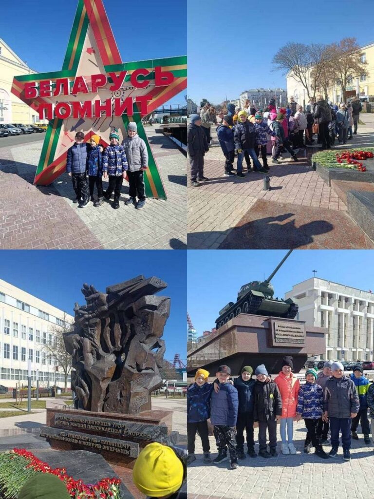 Учащиеся 1 классов ГУО «Средняя школа №15 г.Гомеля» начали весенние каникулы с посещения исторических мест Гомеля. Ребята посетили Партизанскую криничку, где узнали о жизни и деятельности партизан в годы Великой Отечественной войны. Во время обзорной экскурсии по родному городу ребята не смогли пройти мимо и почтили минутой памяти одно из многочисленных страшных мест геноцида в период ВОВ.