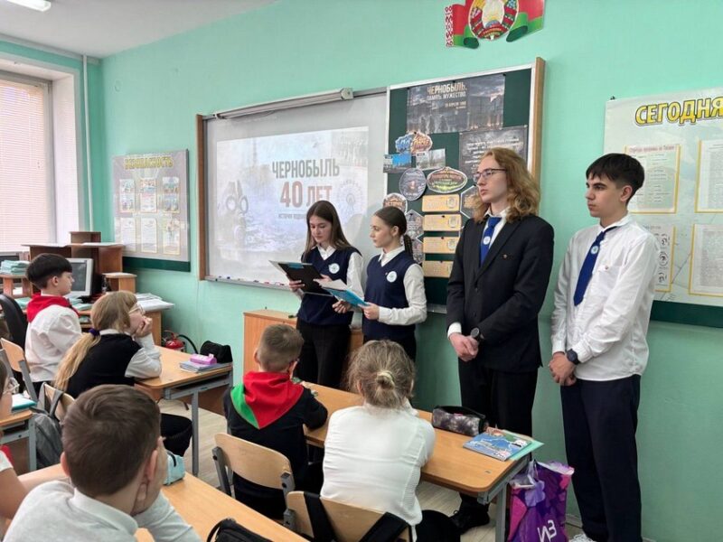 Эхо далекой трагедии: учащиеся 11 «Б» класса ГУО «Средняя школа №15 г. Гомель» провели урок мужества «Чернобыль. Память. Мужество» для младших товарищей.